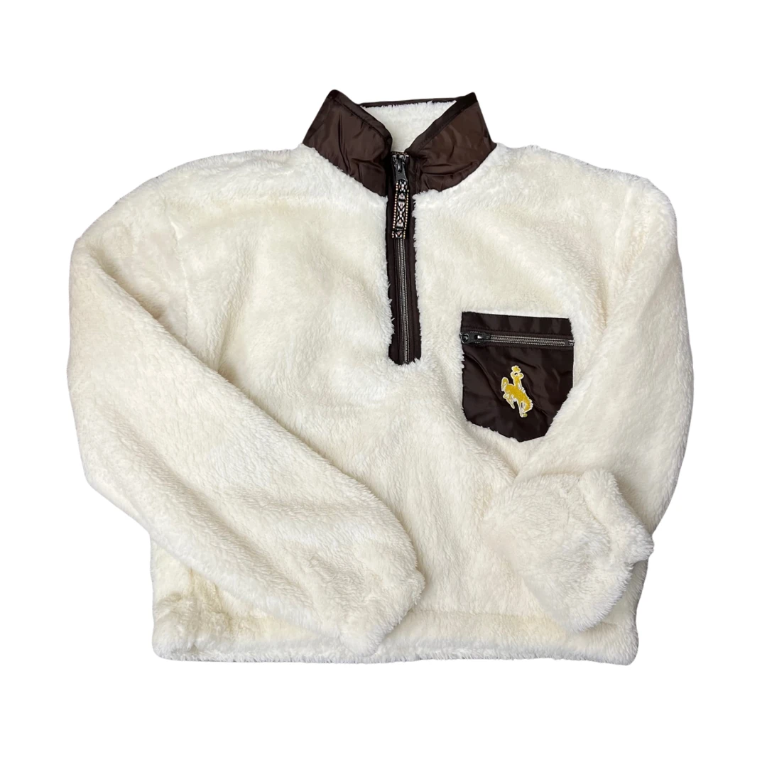 Wyoming Cowboys Women’s Sherpa 1/4 Zip Jacket – Cream
