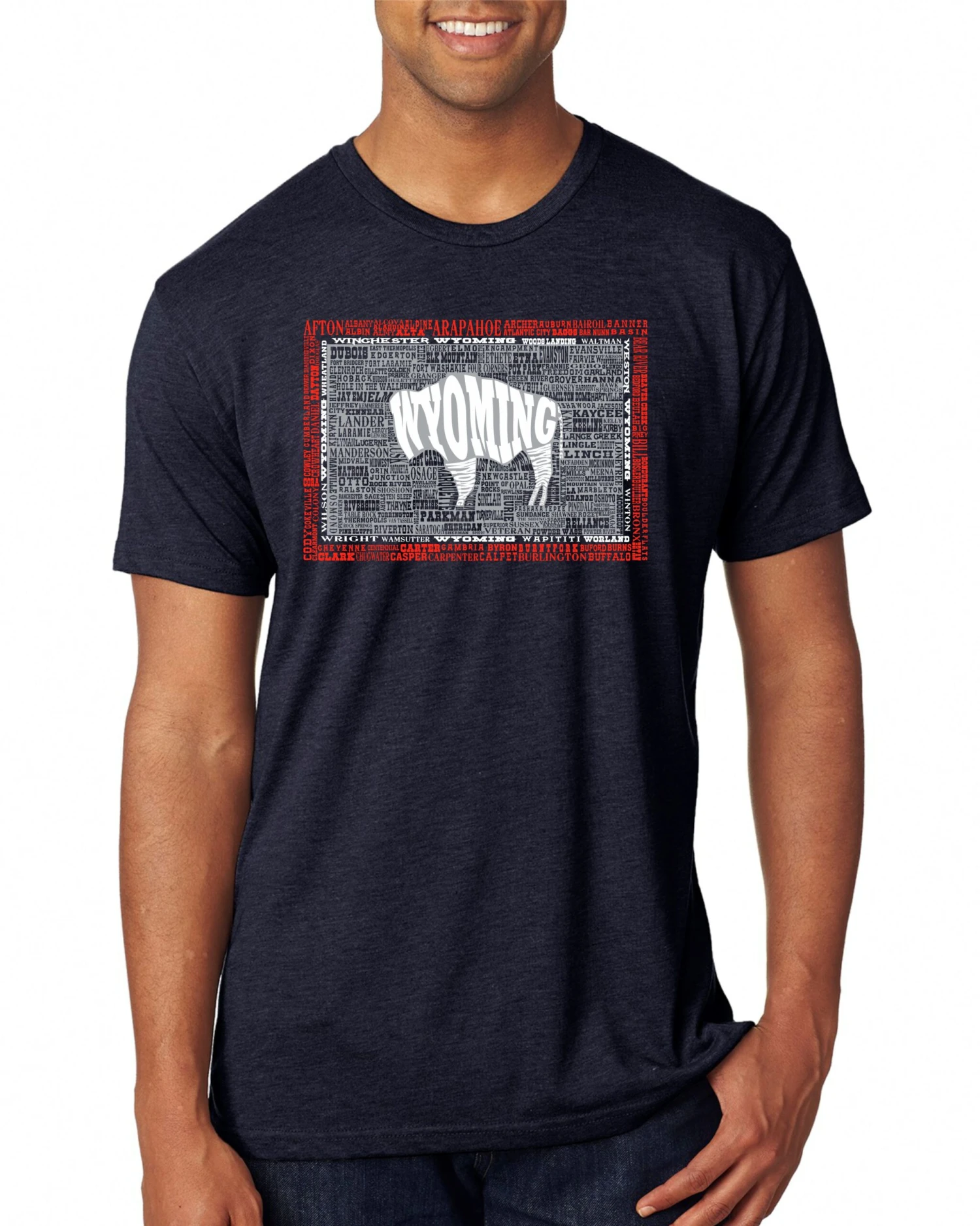 Wyoming State Flag Towns Tee – Vintage Navy